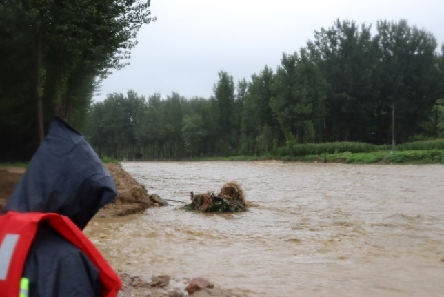 7月30日22时,临时便道被冲毁,跨三会河的临时桥梁被冲毁,供水系统大口井被冲毁,交通中断,停水停产。