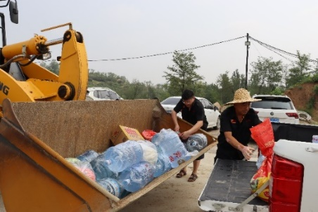 在7月31日夜间,一道泥泞的身影闯进了实业公司,巡查人员问清楚才知道,原来是附近的养鸡场人员过来是寻求救援的。因为断水断电,过河的桥也冲毁了,发电机的柴油已经用完,如果供不上电,大棚高密度养殖的20万只鸡就面临高温缺水,将出现巨大损失。事情紧急,考虑到河水暴涨,不知道什么时候才能过河,电力恢复也需要时间,实业公司是附近山上唯一可以提供救援的力量,杭争强总经理不提条件要求,立即指挥装载机送去了400升柴油,缓解了他们的燃眉之急。养鸡场负责人后来激动地说:你们实业公司救的不是鸡,那可是我的命啊。