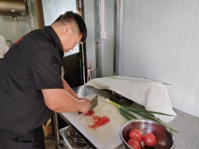 道路断交后,一个厨师上不来,突击队员们各自发挥特长,能拿刀的就切菜,能炒菜的就负责掌勺,要么就负责刷锅洗碗。党员褚续良、职工杨树祥起早贪黑为职工们准备一日三餐,利用现有食材,想办法让大家吃上可口的饭菜。场区内的小菜园解决了蔬菜困难的燃眉之急,有什么蔬菜可以采摘了,就及时采摘。