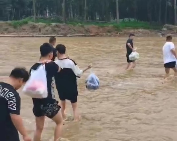 为尽快恢复生产和销售,方便周边群众通行,实业公司在总经理杭争强同志的直接指挥下,带领党员防汛突击队,全力重建临时渡河桥梁。