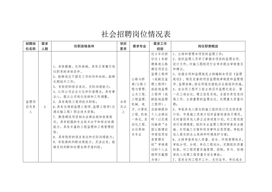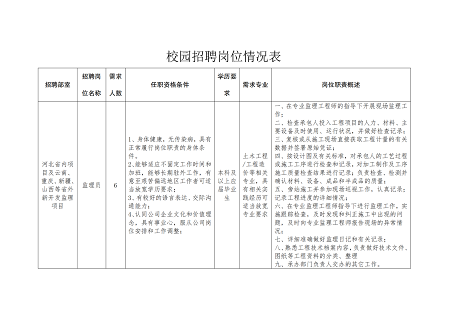 河北省交通建设监理咨询有限公司2024年度社会招聘及春季校园招聘的公告
